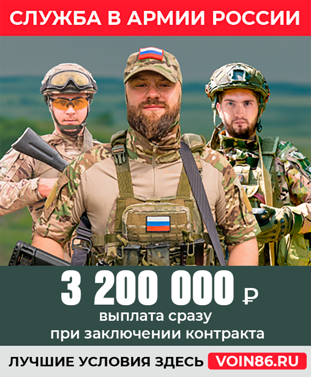 Напомним, воинский контракт из Югры стал самым высокооплачиваемым в России – годовую сумму выплат контрактникам, подписывающим документы в военкоматах региона и Центре патриотов Ханты-Мансийска, увеличили до 5 720 000 рублей, единовременно боец теперь получает 3 200 000 рублей – эта мера поддержки сохранится в Югре до конца октября.